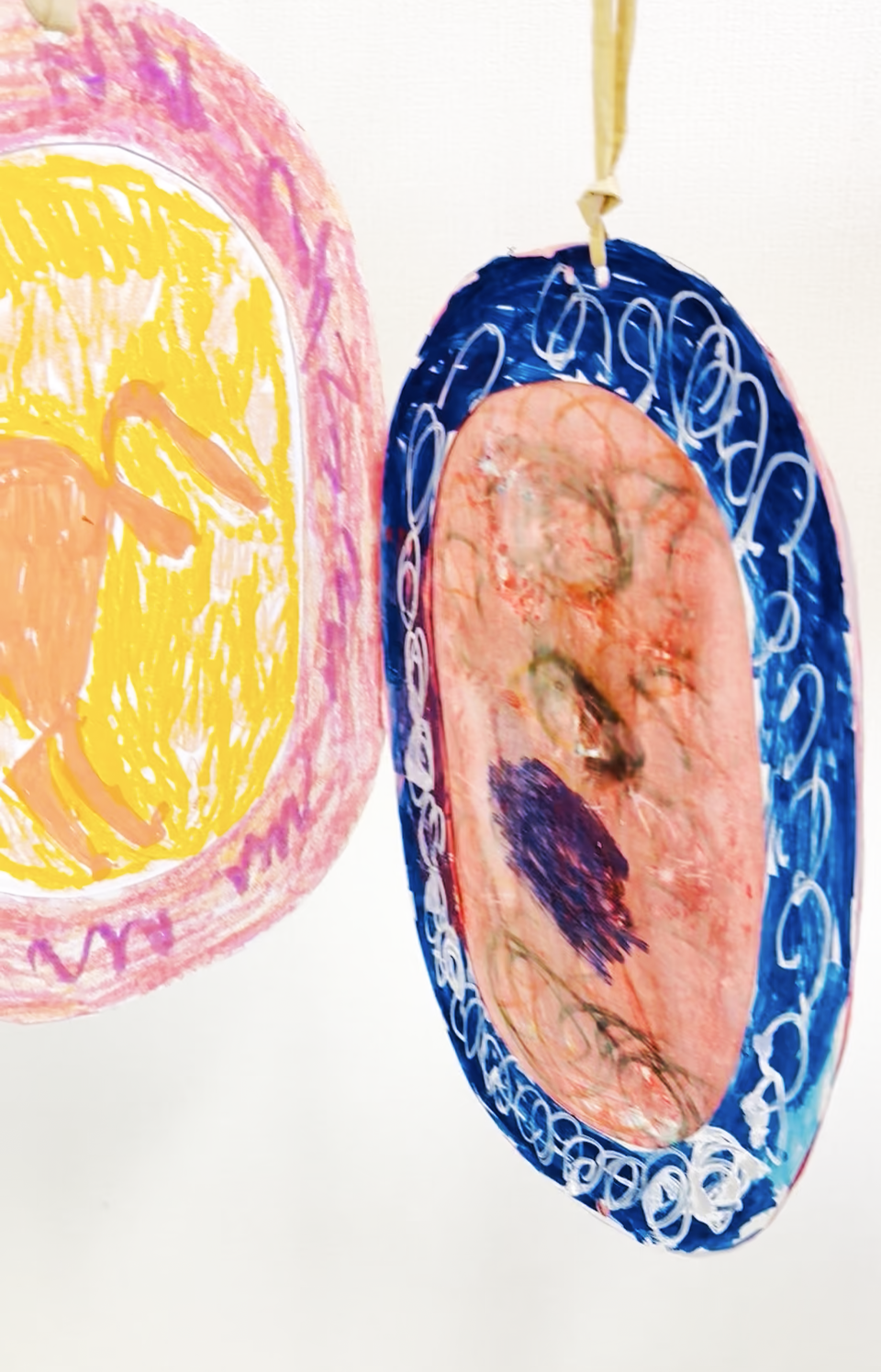 障害のある方に美術館を楽しんでいただくためのイベントです。今回のワークショップでは、カラフルな画材(アクリル絵の具、パステル、ペンなど)を使って自由にフレームアートをつくります。吊るして飾ると、くるくる回るので、色々な角度から作品を楽しむことができます。創作が苦手な方や、早くつくり終わった方は、海の広場やワークショップ室から海を眺めたり展覧会を観覧するなど、自由に過ごしていただけます。